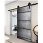 Das raffinierte offen hängendes, schwarzes schiebetürsystem in scheunentor-optik bringt eine moderne Note in Ihr Zuhause.
