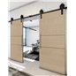 Das einzigartige offen hängendes, schwarzes schiebetürsystem in scheunentor-optik bietet nicht nur eine zuverlässige Funktionalität, sondern unterstreicht auch den modernen Charakter dieser Tür.