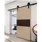 Das offen hängendes, schwarzes schiebetürsystem in scheunentor-optik garantiert eine mühelose Bedienung und unterstreicht den modernen Look.