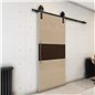Das offen hängendes, schwarzes schiebetürsystem in scheunentor-optik garantiert eine mühelose Bedienung und unterstreicht den modernen Look.