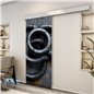Das geschlossen hängendes, edelstahlfarbig eloxiertes schiebetürsystem mit softclose beidseitig garantiert eine mühelose Bedienung und unterstreicht den modernen Look.
