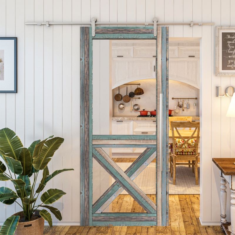 UV-Digitaldruck im Scheunentorstil – In täuschend echter 3D-Optik – Motiv beidseitig sichtbar – Robustes 8 mm Sicherheitsglas – Massives Edelstahl-Beschlagsystem mit offenen Rollen