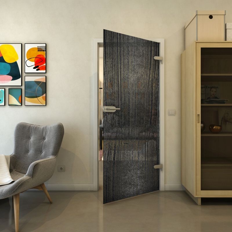 Ganzglastür - Fineprint Modell 032 Schwarz auf Grauglas