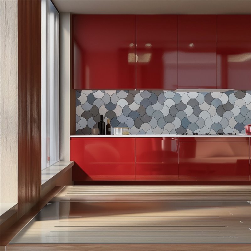 Bringen Sie mit unserer Küchenrückwand aus 6 mm ESG-Glas mit Digitaldruckmotiv eines modernen Fliesenspiegels frischen Wind in Ihre Küche und verwandeln Sie sie in einen einladenden und inspirierenden Raum.