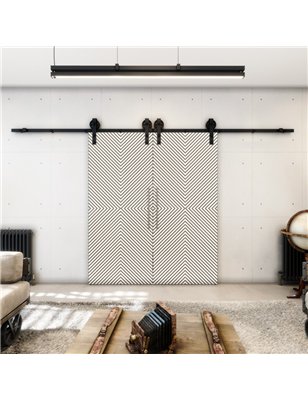 Das offen hängendes, schwarzes schiebetürsystem in scheunentor-optik ist nicht nur robust, sondern auch ein echter Hingucker.