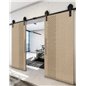 Das offen hängendes, schwarzes schiebetürsystem in scheunentor-optik garantiert eine mühelose Bedienung und unterstreicht den modernen Look.