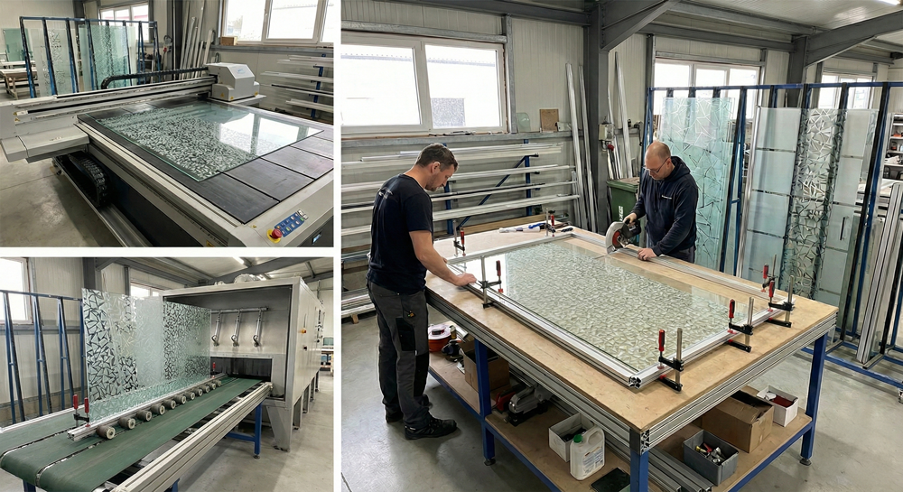 Hochfestes Sicherheitsglas (6 oder 8 mm) in verschiedenen Veredelungen.