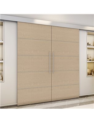 Das geschlossen hängendes, edelstahlfarbig eloxiertes schiebetürsystem mit softclose beidseitig ist nicht nur robust, sondern auch ein echter Hingucker.