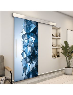 Das Bunte Geometrische Motive in 3d optik verleiht dieser Tür ihren besonderen Charakter.