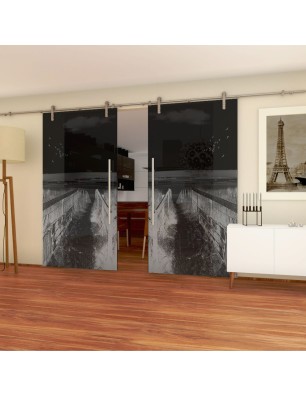 Lasergravur-Optik per UV-Digitaldruck – Wahlweise auf Klarglas oder satiniert – Robustes 8 mm Sicherheitsglas – massives Edelstahl-Beschlagsystem mit kugelgelagerten Laufrollen