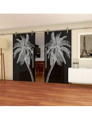 Glasschiebetür PIPE-LINE Palme Gelasert Auf Grauglas