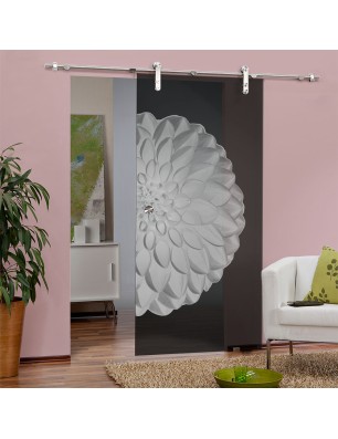 Glasschiebetür PIPE-LINE Blume 8 Gelasert Auf Grauglas