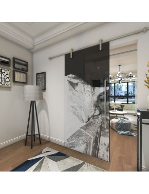 Glasschiebetür PIPE-LINE Dreaming Kitty Gelasert Auf Grauglas