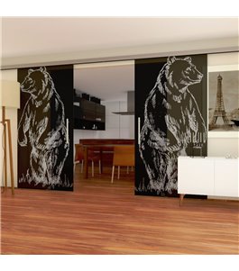 Glasschiebetür SLIM-LINE Skull 3 Gelasert Auf Grauglas