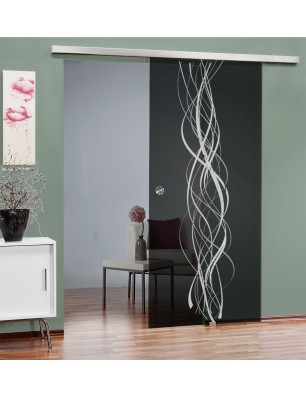 Glasschiebetür SLIM-LINE Abstrakt 3 Gelasert Auf Grauglas