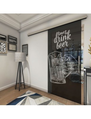 Glasschiebetür SLIM-LINE Time to drink beer Gelasert Auf Grauglas