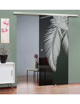 Glasschiebetür SLIM-LINE Blätter 2 Gelasert Auf Grauglas
