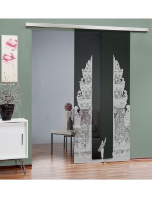 Glasschiebetür SLIM-LINE Cross Gelasert Auf Grauglas
