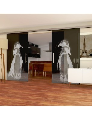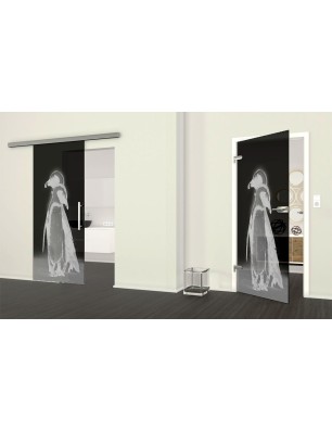 Glasschiebetür SLIM-LINE Pinguine Gelasert Auf Grauglas