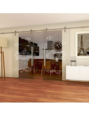 Glasschiebetür PIPE-LINE Kid U-Boot Gelasert Auf Klarglas