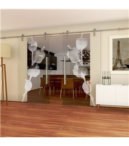 Glasschiebetür PIPE-LINE Pflanze Gelasert Auf Klarglas