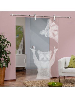 Glasschiebetür PIPE-LINE Waschbären Gelasert Auf Klarglas