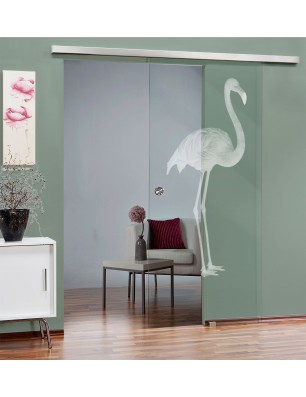 Glasschiebetür SLIM-LINE Flamingo Gelasert Auf Klarglas