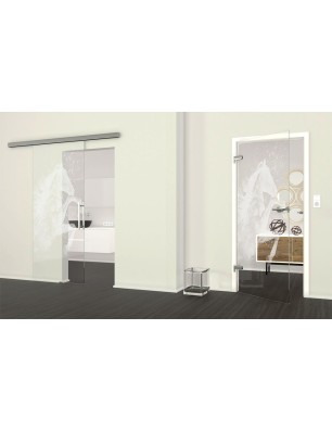 Glasschiebetür SLIM-LINE flying Horse Gelasert Auf Klarglas