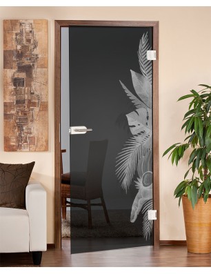 Ganzglastür Tropical I Gelasert Auf Grauglas
