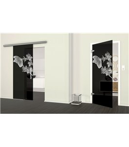 Ganzglastür Butterfly Gelasert Auf Grauglas