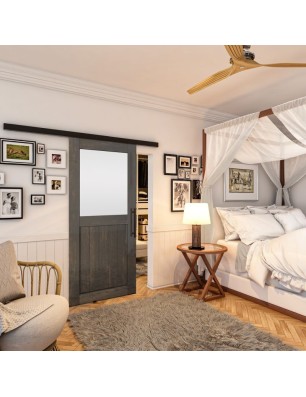 Im Lieferumfang enthalten: Glasschiebetür im Country-Design, Black-Line Beschlagsystem, Griff nach Wahl