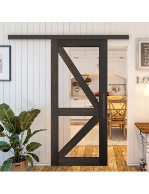 Im Lieferumfang enthalten: Glasschiebetür im Country-Design, Black-Line Beschlagsystem, Griff nach Wahl