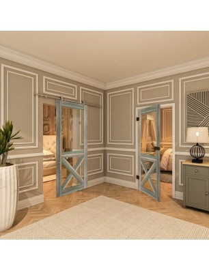 UV-Digitaldruck im Scheunentorstil – In täuschend echter 3D-Optik – Motiv beidseitig sichtbar – Robustes 8 mm Sicherheitsglas – Massives Edelstahl-Beschlagsystem mit offenen Rollen