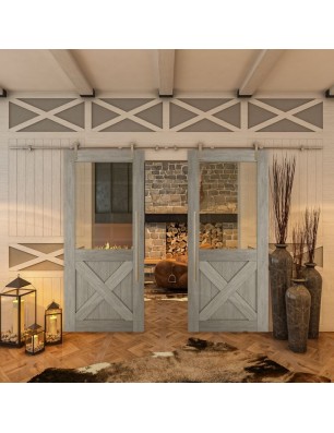 UV-Digitaldruck im Scheunentorstil – In täuschend echter 3D-Optik – Motiv beidseitig sichtbar – Robustes 8 mm Sicherheitsglas – Massives Edelstahl-Beschlagsystem mit offenen Rollen