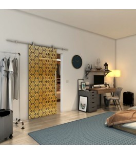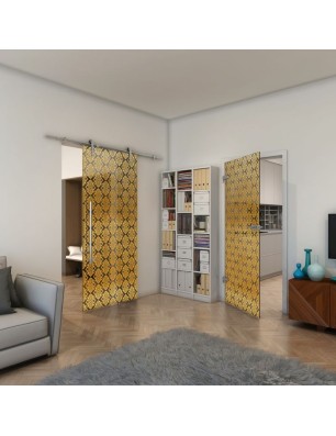 Glasschiebetür PIPE-LINE - Fineprint Modell 001 Gold auf Grauglas