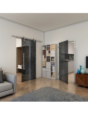 Glasschiebetür PIPE-LINE - Fineprint Modell 016 Schwarz auf Grauglas