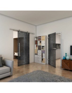 Glasschiebetür PIPE-LINE - Fineprint Modell 050 Schwarz auf Grauglas