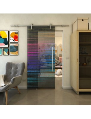 Glasschiebetür PIPE-LINE - Fineprint Modell 019 Verlauf auf Grauglas