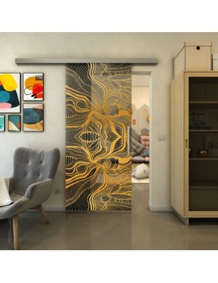 Glasschiebetür SLIM-LINE - Fineprint Modell 010 Gold auf Grauglas