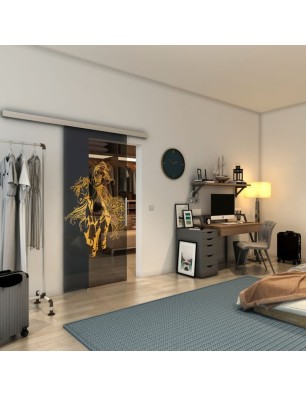 Glasschiebetür SLIM-LINE - Fineprint Modell 118 Gold auf Grauglas