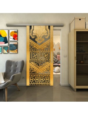 Glasschiebetür SLIM-LINE - Fineprint Modell 156 Gold auf Grauglas