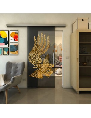 Glasschiebetür SLIM-LINE - Fineprint Modell 157 Gold auf Grauglas