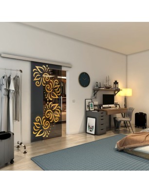 Glasschiebetür SLIM-LINE - Fineprint Modell 163 Gold auf Grauglas