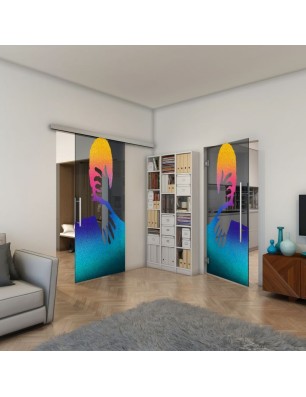 Glasschiebetür SLIM-LINE - Fineprint Modell 124 Verlauf auf Grauglas