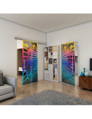 Die SLIM-Line Fineprint-Schiebetüren kombinieren dezente Technik mit kreativen Details: Filigrane Ornamente, Linienmuster oder grafische Elemente werden per UV-Digitaldruck punktgenau auf das Glas aufgebracht – wahlweise in Schwarz, Weiß, Gold oder Regenbogenfarben.