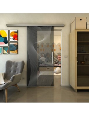 Glasschiebetür SLIM-LINE - Fineprint Modell 009 Weiss auf Grauglas