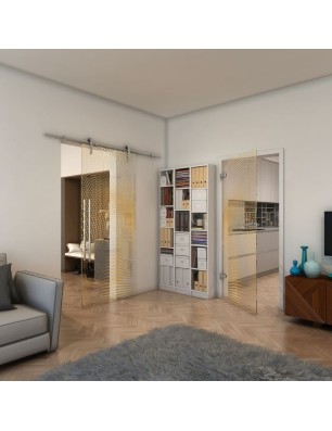 Glasschiebetür PIPE-LINE - Fineprint Modell 027 Gold auf Klarglas