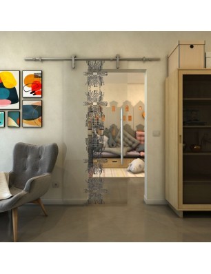 Glasschiebetür PIPE-LINE - Fineprint Modell 081 Schwarz auf Klarglas