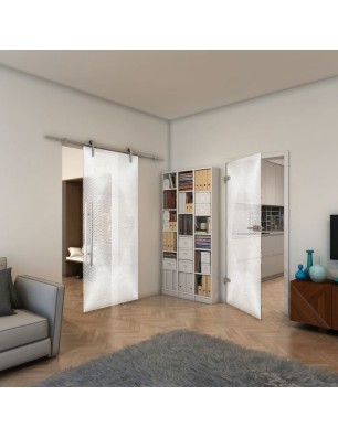 Glasschiebetür PIPE-LINE - Fineprint Modell 025 Weiss auf Klarglas