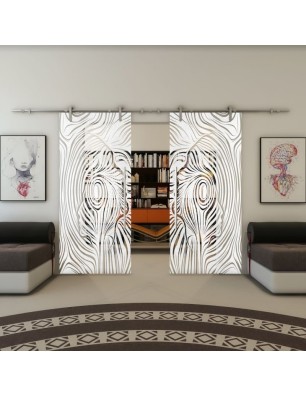 Glasschiebetür PIPE-LINE - Fineprint Modell 074 Weiss auf Klarglas